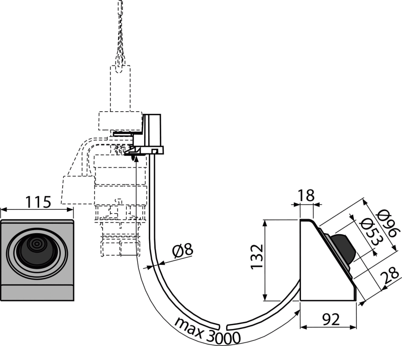 - Hadička 3 m na prepojenie tlačítka a vypúšťacieho ventilu