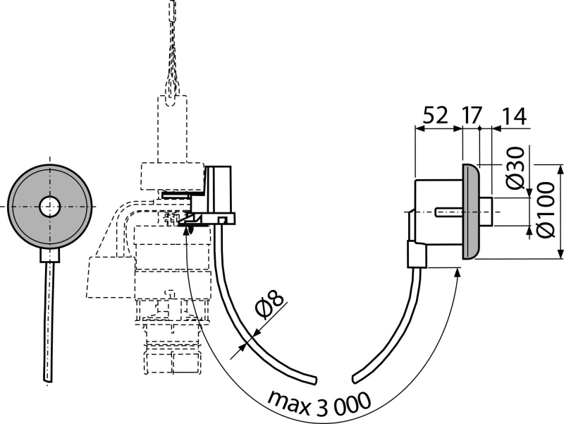 - Hadička 3 m na prepojenie tlačítka a vypúšťacieho ventilu