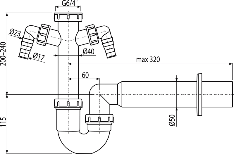 - Telo sifónu s dvoma prípojkami