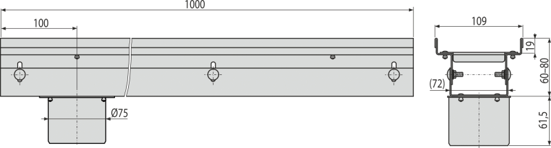 - Výškovo nastaviteľné telo žľabu 60–80 mm