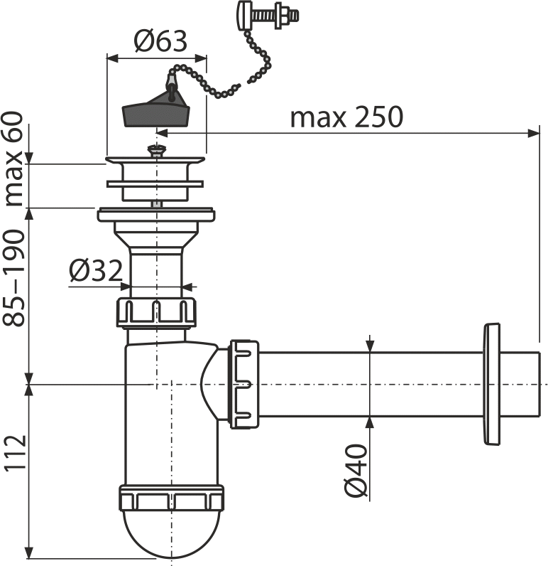 | P0008-ND | Zátka kompletná s retiazkou (umývadlové sifóny) |